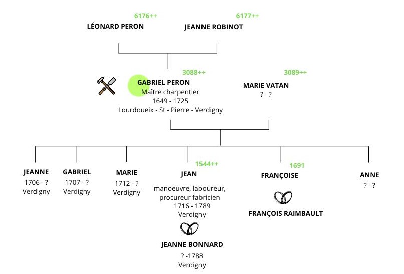 Cette année nous fêtions les 300 ans du décès de Gabriel Peron, ancêtre rencontré à trois endoits différents de mon arbre. Il a la particularité d’être l’un des rares ancêtres à être orginaire d’un autre département que le Cher. Il était également maître charpentier.