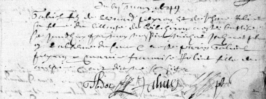- je n’ai pas suffisamment de connaissance en paléographie pour déchiffrer intégralement ses actes de naissance et de mariage