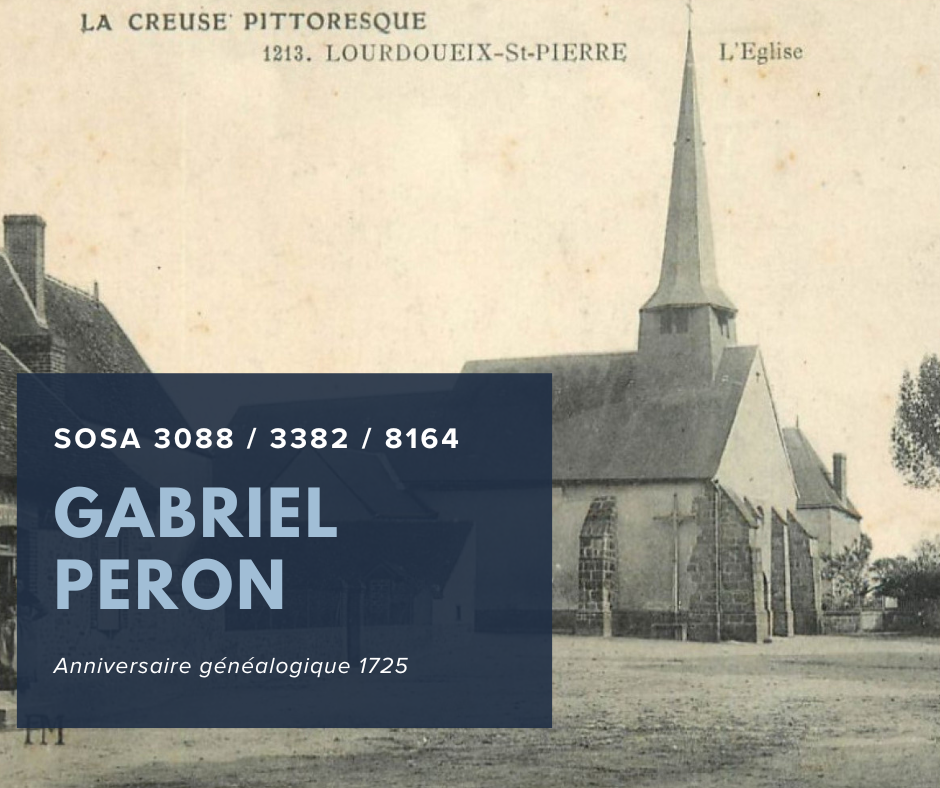 Gabriel PERON est baptisé le 7 mar 1649 à Lourdoueix-Saint-Pierre dans la Creuse. Ce village est tout proche du Berry, en l’occurrence de l’Indre, à une vingtaine de kilomètres de la frontière. Cela explique sans doute la migration ultérieure vers le Sancerrois.